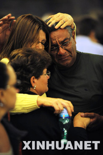 6月4日,在巴西里约热内卢坎德拉里亚教堂,遇难者家属在仪式结束后相互安慰。新华社记者 宋为伟 摄