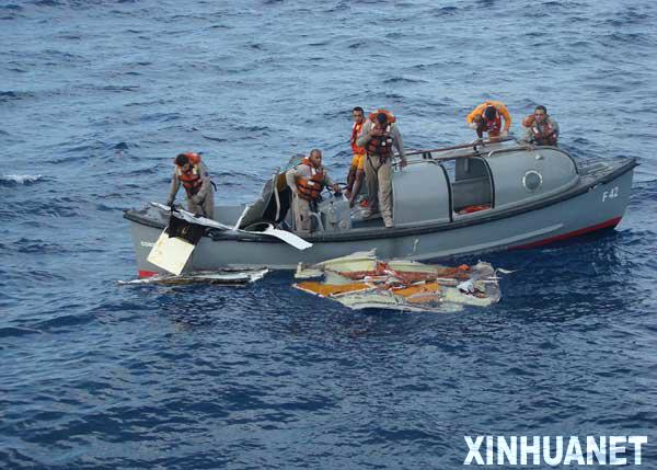 这张巴西空军6月7日提供的照片显示,巴西海军在巴西附近大西洋海域打捞失事的法航A330客机残骸。当日,巴西空军和海军又打捞上3具法航失事客机遇难者遗体和更多飞机残骸。 新华社发