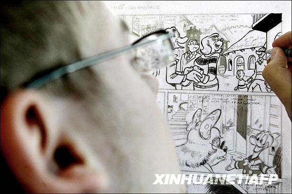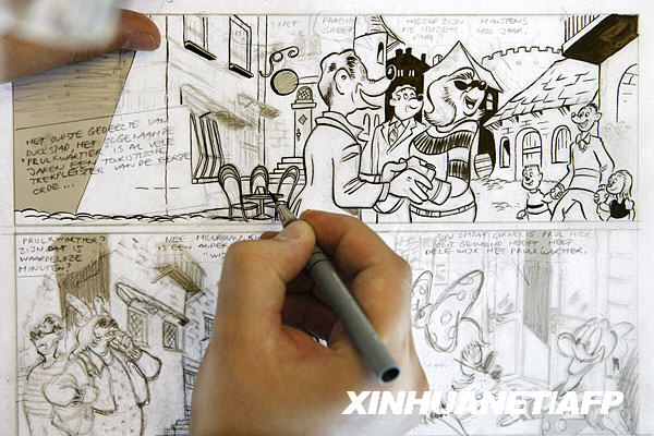 6月9日,在荷兰哈勒莫梅尔的霍夫多夫,绘图人员在工作室内绘制新一辑唐老鸭漫画。新华社/法新