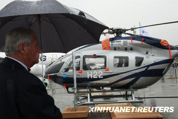 6月15日,在法国巴黎北郊的布尔歇国际展览中心,人们冒雨参观第48届巴黎国际航空航天展。第48届巴黎国际航空航天展当日正式拉开帷幕,并将持续到21日。作为世界上规模和影响力最大的航展之一,它已走过了整整100年的历程。新华社/路透