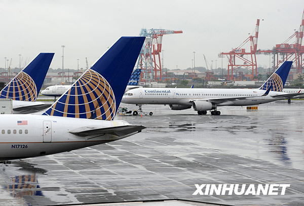 6月18日,美国大陆航空公司的飞机停在新泽西州纽瓦克机场的停机坪上。新华社记者申宏摄