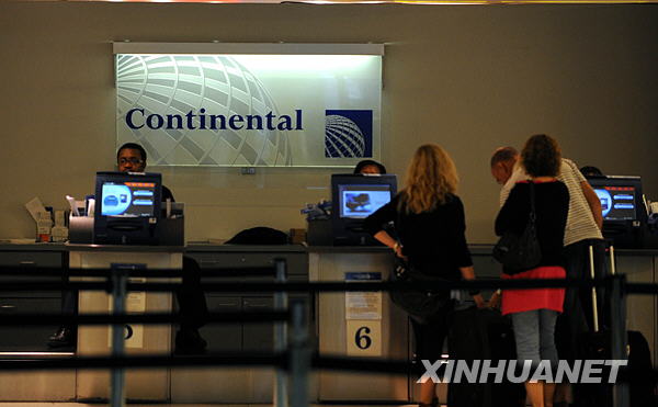 6月18日,乘客在美国新泽西州纽瓦克机场的美国大陆航空公司服务台前办理换乘手续。新华社记者申宏摄