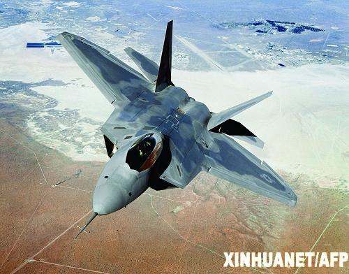 这张未标注日期的资料照片显示的是一架F-22战斗机在加州上空行进。 新华社/法新