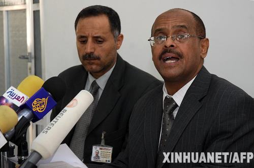 6月30日,也门民航局副局长穆罕默德·阿卜杜勒—拉赫曼·阿卜杜勒—卡迪尔(右)在也门首都萨那参加记者招待会。也门民航局当日说,搜救小组已在印度洋岛国科摩罗附近海域发现失事客机的遇难者遗体。也门航空公司一架客机6月30日晨在即将飞抵印度洋岛国科摩罗国际机场时坠入印度洋,当时机上有150名乘客。 新华社/法新