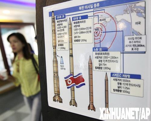 7月2日,在韩国的京畿道坡州的一处观察哨所,一名韩国游客经过一幅显示朝鲜导弹系统的图表。韩国媒体2日援引军方人士消息报道说,朝鲜于当地时间17时20分、18时和19时50分(北京时间16时20分、17时和18时50分)先后在咸镜南道咸兴市以南地区向海上发射了3枚地对舰导弹。新华社/美联