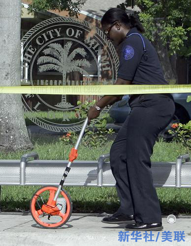 7月6日,在美国佛罗里达州迈阿密市,警察在枪击案现场布置警戒线。美国警方说,当日凌晨3名身份不明的枪手袭击了正在迈阿密市举行的一个大型生日聚会,导致12人受伤,并造成混乱。新华社/美联