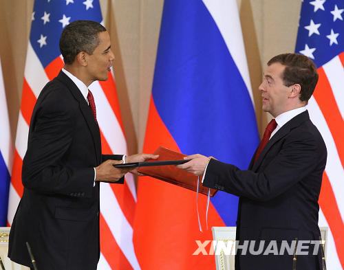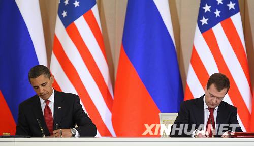 新华网莫斯科7月6日电(记者 刘洋)俄罗斯总统梅德韦杰夫和美国总统奥巴马6日在莫斯科举行会谈,就进一步削减进攻性战略武器达成共识,并签署了规定两国新条约内容的框架性文件。