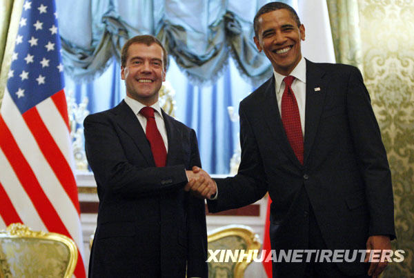 新华网莫斯科7月6日电(记者刘洋 余懋峰)俄罗斯总统梅德韦杰夫和美国总统奥巴马6日在莫斯科举行会晤,双方就削减进攻性战略武器、阿富汗反恐、核不扩散问题等达成广泛共识,签署了多份文件。