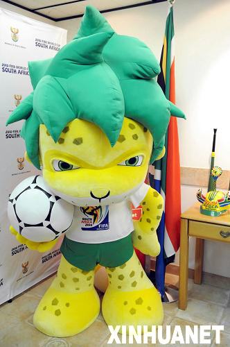 6月29日,世界杯推广活动上的2010年世界杯吉祥物扎库米。当日,南非共和国驻香港特别行政区领事馆举行新闻发布会宣布,南非政府为庆祝2010年主办世界杯,将在香港举行为期一年的推广活动。新华社记者卢炳辉摄