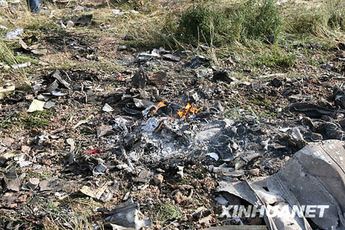 7月15日在伊朗加兹温市附近的坠机现场拍摄的客机残骸。当日,伊朗里海航空公司的一架客机在该国西北部城市加兹温附近的村庄坠毁,机上153名乘客和15名机组人员全部遇难。新华社记者梁有昶摄