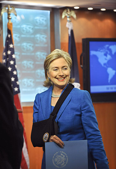 有分析人士认为,正是由于这种特殊地位的敏感性,上任近6个月来,希拉里似乎总是有意无意地把舞台中心让给奥巴马。一些观察人士甚至怀疑希拉里没有陪同奥巴马访问俄罗斯的真正原因并非是肘部伤痛,而是避免抢了奥巴马的“风头”。(中国青年报华盛顿7月16日电 记者 鞠辉)