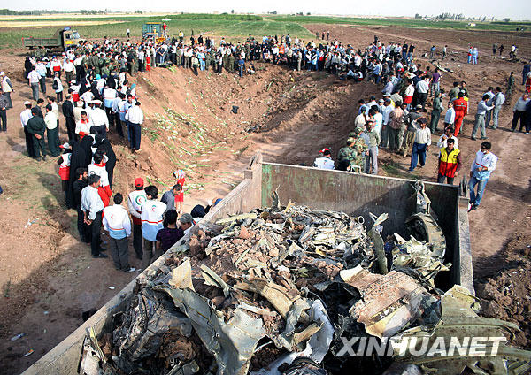 7月16日,部分遇难者的亲属在伊朗西北部城市加兹温附近的坠机现场悼念亲人。一架由伊朗首都德黑兰飞往亚美尼亚首都埃里温的伊朗客机15日在加兹温附近坠毁,机上168人全部遇难。新华社发(哈拉比萨斯摄)