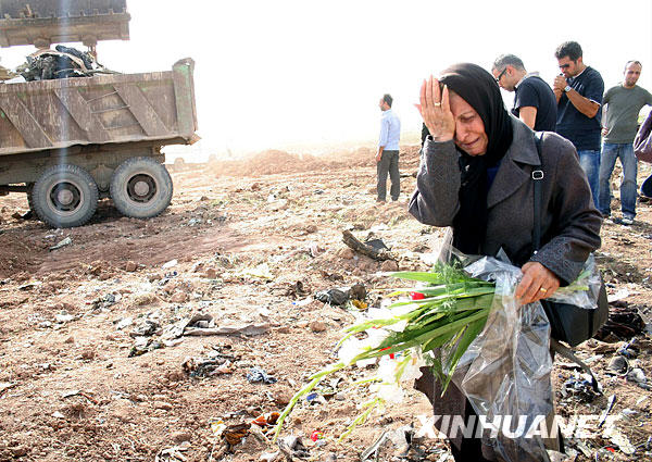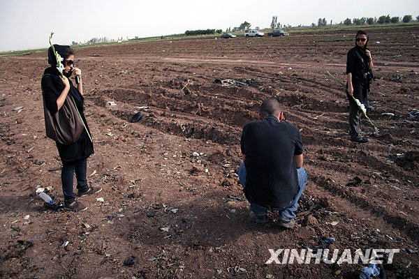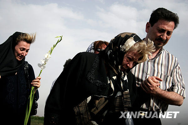 7月16日,遇难者亲属在伊朗西北部城市加兹温附近的坠机现场悼念亲人。一架由伊朗首都德黑兰飞往亚美尼亚首都埃里温的伊朗客机15日在加兹温附近坠毁,机上168人全部遇难。新华社发(哈拉比萨斯摄)