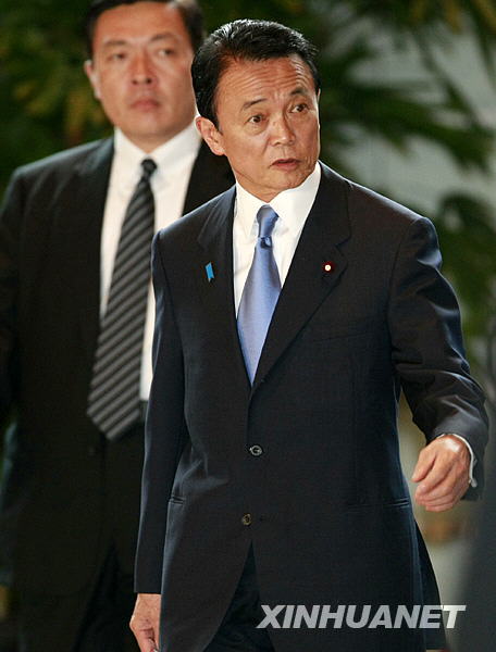 7月21日上午,在日本首都东京,日本首相麻生太郎步入首相官邸,参加众议院解散之前的内阁会议。当天的内阁会议通过了于当天解散国会众议院的决定。新华社记者 任正来 摄