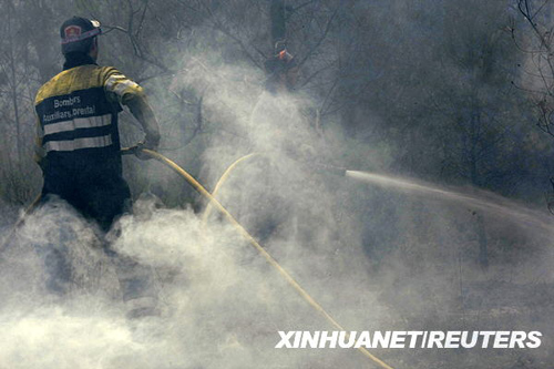 7月22日,西班牙消防员在塔拉戈纳附近甘德萨地区的森林火场灭火。新华社/路透