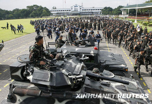 菲律宾日前已宣布首都地区进入最高戒备状态,为菲总统阿罗约27日在国会发表其任期内最后一次的年度国情咨文做好防范工作。新华社/路透
