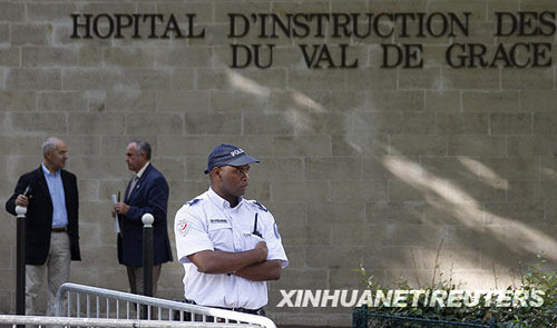7月26日,安全人员在法国首都巴黎的瓦勒德格拉斯军队医院门口警戒。当日,法国总统萨科齐因身体不适,被送往瓦勒德格拉斯军队医院接受检查和治疗。随后,法国总统府秘书长克洛德·盖昂向媒体表示,萨科齐目前仍在医院接受治疗,不过他的病情已无大碍。 新华社/路透