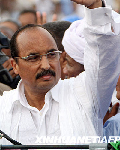 7月19日,毛里塔尼亚内政部宣布,前“最高国务委员会”军政权领导人穆罕默德·乌尔德·阿卜杜勒-阿齐兹在18日举行的总统选举中获得52.58%有效选票,赢得总统选举。这是2009年7月17日,阿齐兹在毛里塔尼亚首都努瓦克肖特参加竞选集会的资料照片。新华社/法新