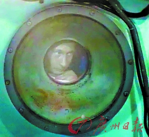 1日,他身穿蓝色保温服,乘潜艇在贝加尔湖中说:“这次潜水过程相当完美。”