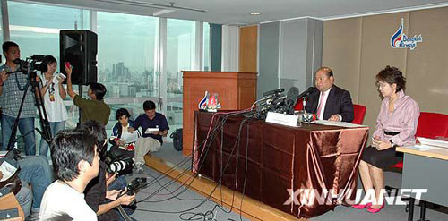 8月4日,曼谷航空公司总裁普提蓬·巴萨通奥索在曼谷召开的新闻发布会上就客机滑出跑道事故发表讲话。新华社发(塔纳摄)