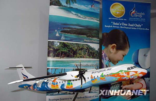 这是8月4日在泰国曼谷拍摄的曼谷航空公司展示的发生事故的ATR72型客机模型。新华社发(塔纳摄)