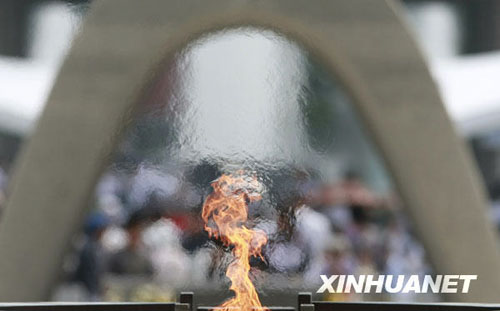 8月5日,在日本广岛和平纪念公园,人们在永不熄灭的和平之火前祈祷。日本是迄今世界上唯一一个遭受过原子弹轰炸的国家。新华社记者任正来摄