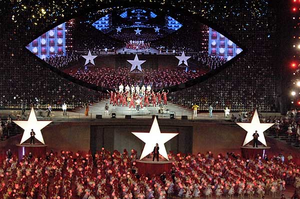 8月9日,演员在滨海湾浮动舞台上表演。新华社记者张永兴摄