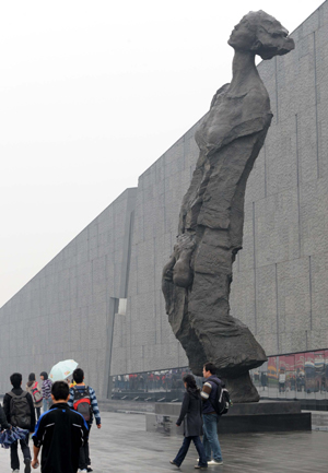 注解:现在,在中国南京市郊外的屠杀现场修建了侵华日军南京大屠杀遇难同胞纪念馆(1985年8月15日开馆)。在那里,展示了被日军屠杀的30万市民和放下武器的士兵的情况。另外,日本国内对屠杀数字也有“十几万人”的说法。