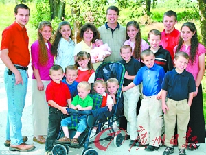 米歇尔和丈夫吉姆·达格尔24年前结婚。婚后第4年,21岁的米歇尔生下第一个孩子,是个男孩,取名乔希。之后,孩子以平均一年一个的速度降生。而达格尔家的规模越来越庞大。