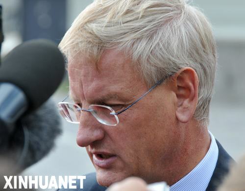9月4日,在瑞典首都斯德哥尔摩举行的欧盟非正式外长会议之前,欧盟轮值主席国瑞典外交大臣卡尔·比尔特向新闻界发表讲话。当日,比尔特敦促伊朗通过谈判而不是对抗解决伊朗核问题。新华社记者吴平摄