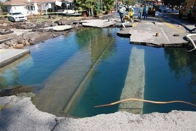 该条水管直径64英寸长,位于洛杉矶本图拉大道,于当地时间星期六黄昏爆裂,导致大量流水涌出,冲毁路面,部分地方水深数英寸,一辆汽车被冲走,消防安全救出司机。