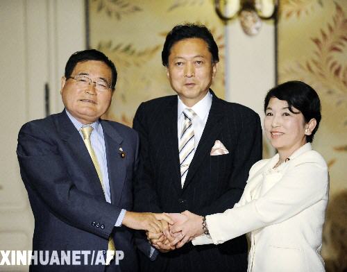 据“中央社”报道,民主党、社民党和国民新党三党魁此前签署同意书,决定共同组成联合政权,民主党党魁鸠山由纪夫随后正式邀请两友党党魁入阁。