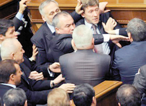 自2004年橙色革命以来,执政的“橙色联盟”成员和亲俄的反对派之间的争吵让乌克兰议会时常上演暴力事件。