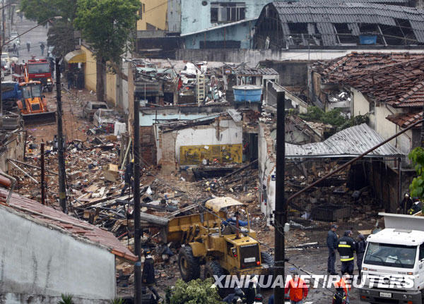 这是9月24日在巴西圣保罗郊区的圣安德烈镇拍摄的爆炸现场。当日,圣安德烈镇发生一起烟花爆炸事故,造成几座房屋被毁,至少3人死亡。新华社/路透