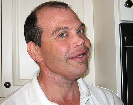 中新网9月27日电 英国46岁男子加莱格8年前因罹患口腔癌而严重毁容,他利用身体其他部分的骨骼植入面部,经过16次手术重塑脸庞,现在看起来已变成另一个人。