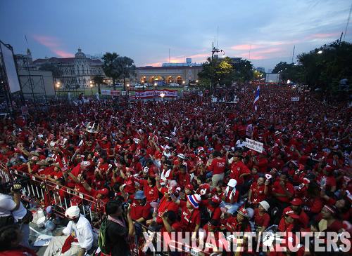 上万名“红衫军”17日在总理府所在地附近举行示威活动。活动组织者乍杜蓬·蓬攀说:“‘红衫军’今天集会目的是问请愿书审查的进展。我们来这里是想向政府发出信号……我们本月底会再回来,抗议活动不会很快结束。”