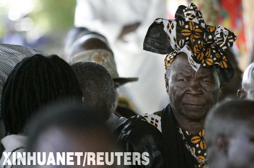 资料图片:2008年11月4日,奥巴马的祖母萨拉·侯赛因·奥巴马在肯尼亚西部参加当地一个祝愿奥巴马获胜的特别祈祷活动。 新华社/路透