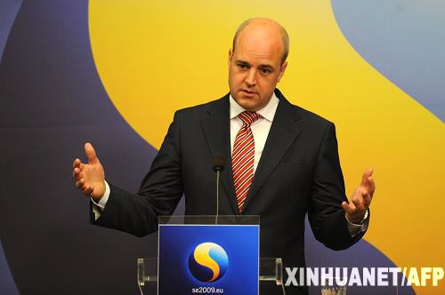 10月3日,在瑞典首都斯德哥尔摩,欧盟轮值主席国瑞典首相赖因费尔特在记者招待会上发言,欢迎爱尔兰全民公投通过旨在推动欧洲一体化进程的《里斯本条约》,并希望波兰和捷克尽快批准这个条约,以便条约能早日得到实施。新华社/法新