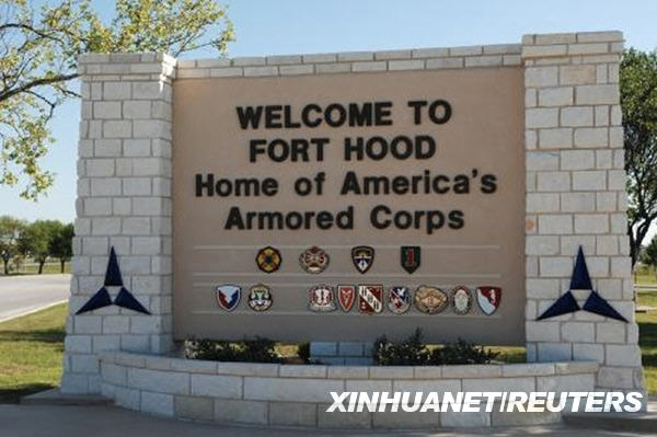 这张未标明日期的照片显示的是美国得克萨斯州胡德堡陆军基地大门。新华社/路透