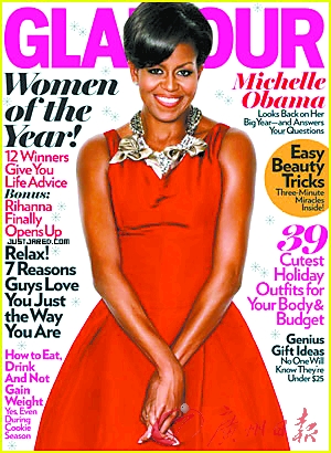 美国第一夫人米歇尔·奥巴马以一身红裙登上美国时尚杂志《Glamour》的封面,并且被评为“年度女性”。