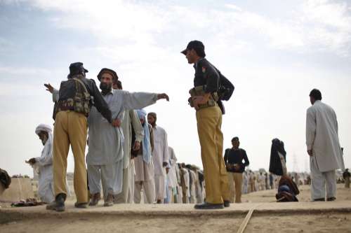 来自巴基斯坦瓦济里斯坦的部族民众在阿富汗边界检查站接受检查。