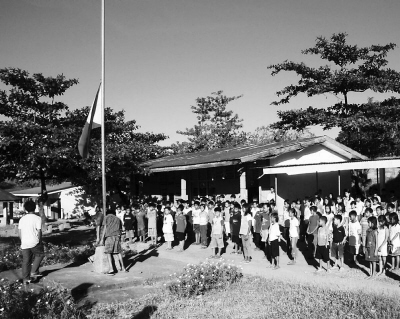 11月26日,位于菲律宾阿布拉省邦贵的一所小学降半旗,悼念在绑架和屠杀事件中的遇害者。
