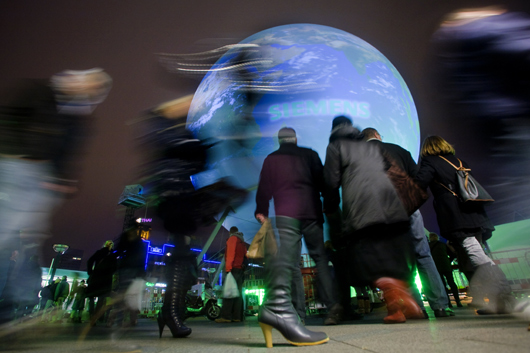 12月6日,哥本哈根市中心广场树起一个巨大的“地球”