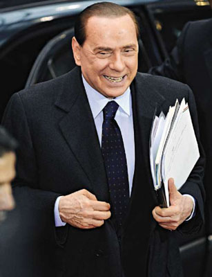 中新网12月14日电 英国媒体消息,意大利总理贝卢斯科尼又在公众场合“献丑”了!他十一日在布鲁塞尔出席欧盟一个首脑会议时,和与会首脑们分享不同时代女性所穿内衣裤的画作,把首脑们吓一跳。