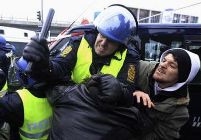 中新网12月17日电 哥本哈根联合国气候变化会议进入谈判最后阶段,场外抗议行动也益发激烈。据台湾《中国时报》报道,哥本哈根郊区会场贝拉会展中心外的抗议人士越聚越多,与丹麦警方爆发多起推挤冲突,警方16日并动用胡椒喷剂和警棍,强力驱退试图扰乱会议进行的抗议群众。