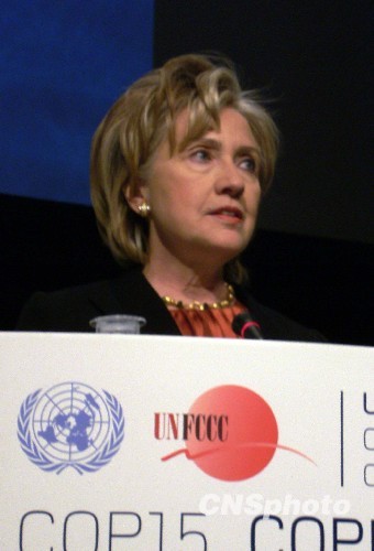 希拉里当天上午的记者会是临时安排的,也是她在会场的首场公开活动。她神态轻松地说,在所有主要经济体采取有意义的减排行动并保证执行透明的前提下,美国将和其他国家一起到二0二0年为发展中国家应对气候变化每年提供一千亿美元。