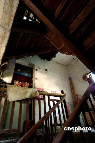 侵华日军下关华月楼慰安所位于商埠街惠安巷13号,是一幢三层木质结构的楼房,占地面积在200平方米左右。2005年4月28日摄于南京下关商埠街惠安巷。 中新社发 刘建民 摄