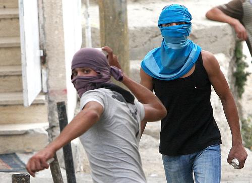 10月9日,以色列警察与抗议者在位于东耶路撒冷的一个社区内发生冲突,造成多人受伤。这是抗议者向警察投掷石块。(10月9日摄)