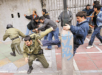 伊朗改革派示威者与德黑兰警察发生冲突。