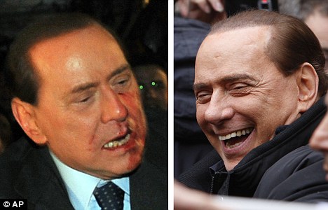 意大利总理贝卢斯科尼是在去年12月13日参加自由人民党在米兰的集会时遭到袭击的,这让他不得不在医院待了四天的时间。